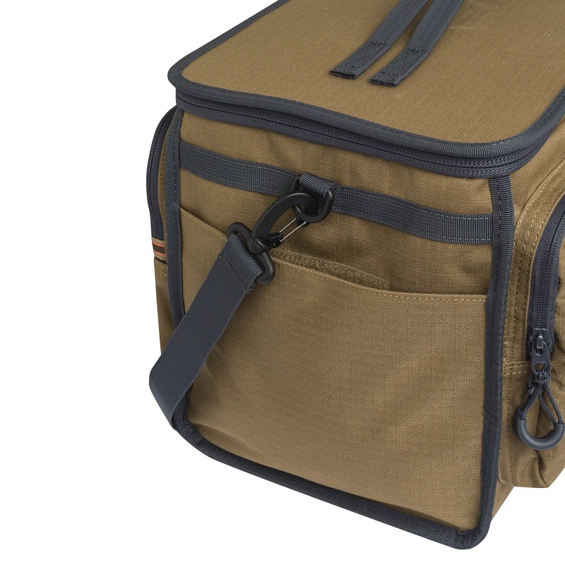 Taška na náboje pojme až 10 škatúľ s 25 kazetami s 3 vonkajšími vreckami na tlmivky, uzávery a ďalšie príslušenstvo.Vlastnosti :Miesto pre 10 škatúľ po 25 kazietVyrobené z odolného materiáluRemeň na nosenie2 vonkajšie vrecá na YKK zips27 x 44 x 25cm