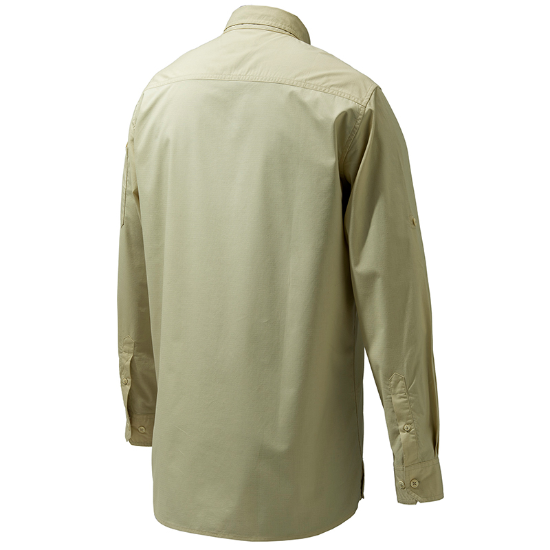 Pánska košeľa Mortirolo s dlhým rukávom vyrobená z bavlny a polyesteru s antibakteriálnou úpravou a ochranou proti UV žiareniu. Ľahká a priedušná.Vlastnosti:Skrytý gombík na golierZapínanie na gombíky a suchý zips na hrudiVrecká s dvoma priehradkamiVrecko so zipsomUzáver a držiak na pero na rukáveVyhrnutý rukávVyšívané logo BerettaStrih: Regular fit
