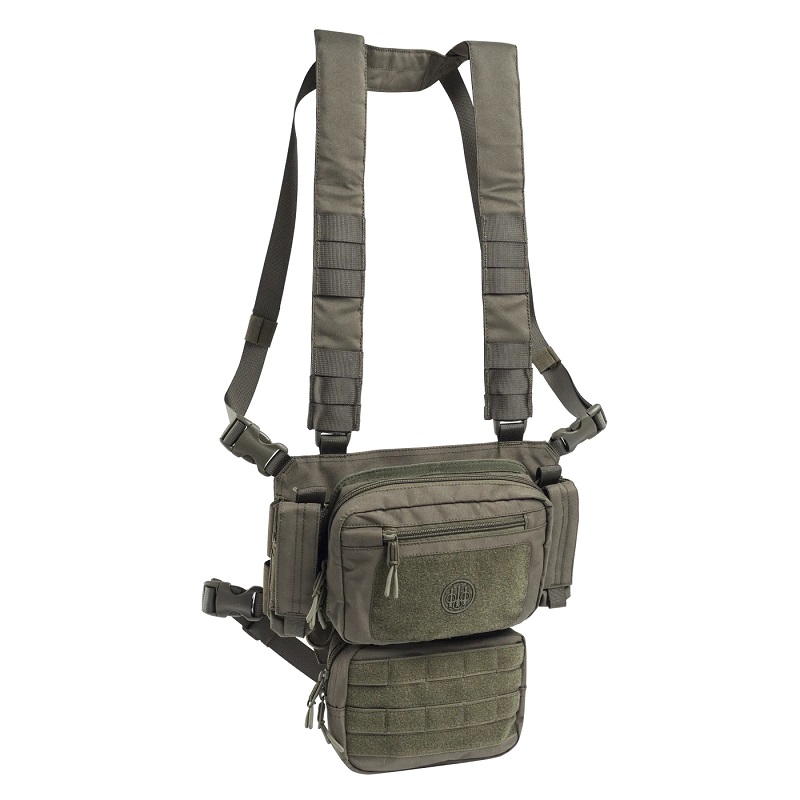 Tactical Chest Rig vyrobený z vysoko odolného ripstop materiálu. Do hrudnej súpravy sa zmestia až 4 zásobníky STANAG a 2 zásobníky pištole. Rozhranie MOLLE umožňuje používateľom prispôsobiť podľa svojich potrieb. Veľké viacúčelové vrecko umiestnené na prednej strane a odnímateľné vrecko na spodnej strane. Hrudník je vybavený dvoma nastaviteľnými upevňovacími popruhmi rôznych dĺžok, aby sa zabezpečilo optimálne uchytenie.  Training Gear Uniform Spoločnosť Beretta a jej oddelenie výskumu a vývoja už viac ako desať rokov neustále investuje do navrhovania technologicky vyspelých riešení doplnkov a odevov pre ozbrojené sily. Táto skúsenosť s porovnávaním a testovaním produktov v teréne spolu s vojenskými expertmi dala podnet na vznik kolekcie Training Gear pre civilistov – pre nadšencov aj profesionálov. Položky z kolekcie Training Gear Clothing and Accessories naozaj vynikajú svojimi rozsiahlo preskúmanými vysokovýkonnými materiálmi, aplikovanými technológiami a zmyslom pre detail. Sortiment taktického príslušenstva charakterizujú produkty určené pre tréningové aktivity na strelnici aj mimo nej. Vlastnosti Polstrované a nastaviteľné ramenné popruhy Nastaviteľné zadné zapínanie pomocou popruhu Štyri vrecká na puškové zásobníky Dve vrecká na pištoľový zásobník MOLLE predné vrecko 20cmX20cm MOLLE spodné vrecko 10cmX20cm Zloženie 100,0% polyester