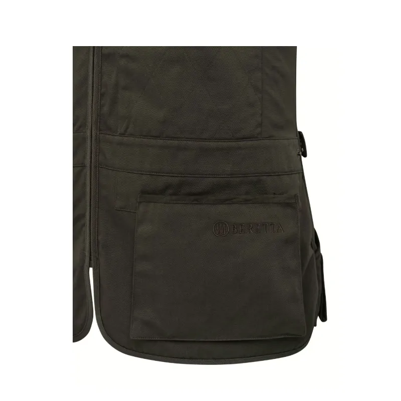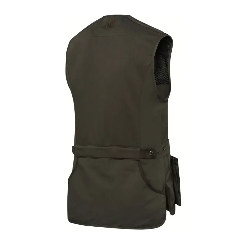 Pánska strelecká vesta Teal Sporting EVO ľahká a obopínajúca vďaka gabardénovej tkanine z bavlny a polyesteru. Bavlnený obojručný polstrovaný ramenný popruh. Bavlnený ramenný popruh umožňuje dokonalé nosenie cez rameno. Elastické vsadky na bokoch optimalizujú strih vesty. Nastavenie v páse zaisťuje maximálnu ergonómiu. Predné vrecká na držiaky nábojov. Veľký priestor na prispôsobenie na chrbte úplne z bavlny. Vlastnosti: Bavlnené ramenné popruhy, polstrované Centrálny YKK zips. Vrecko kompatibilné s "Beretta Recoil Reducer EVO" (nie je súčasťou dodávky) Priestranné predné vrecká s klinom a spevnením z mikrovlákna Elastické vsadky na bokoch Nastavenie pásu pomocou patentných gombíkov Systém na zavesenie slúchadiel alebo uteráka na stranu Dvojité zadné vrecko s výstužami z mikrovlákna Vyšívané logo Beretta na prednom vrecku a na zadnej strane Strih: rovný